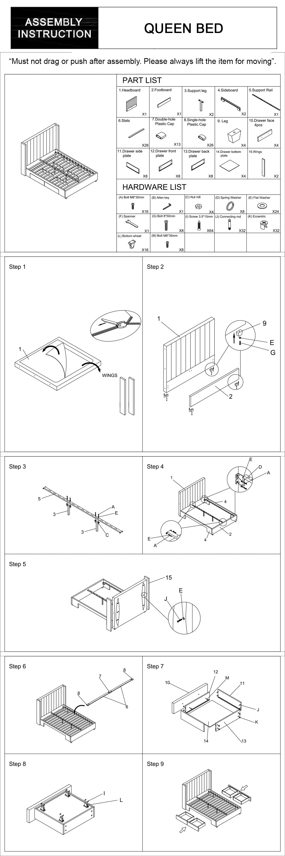 Alexa Beige Linen Fabric Headboard 4 Drawers with Wheels MDF Bed Frame