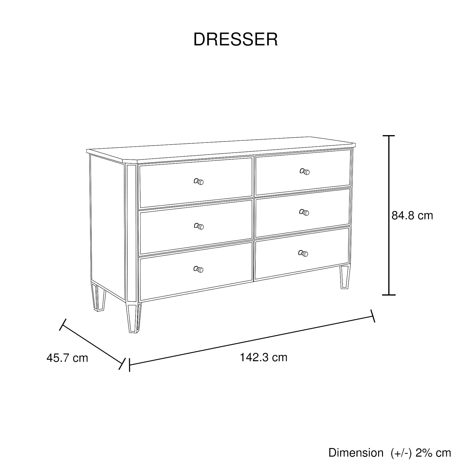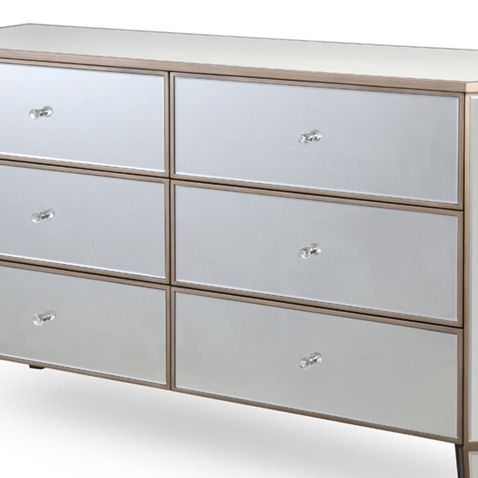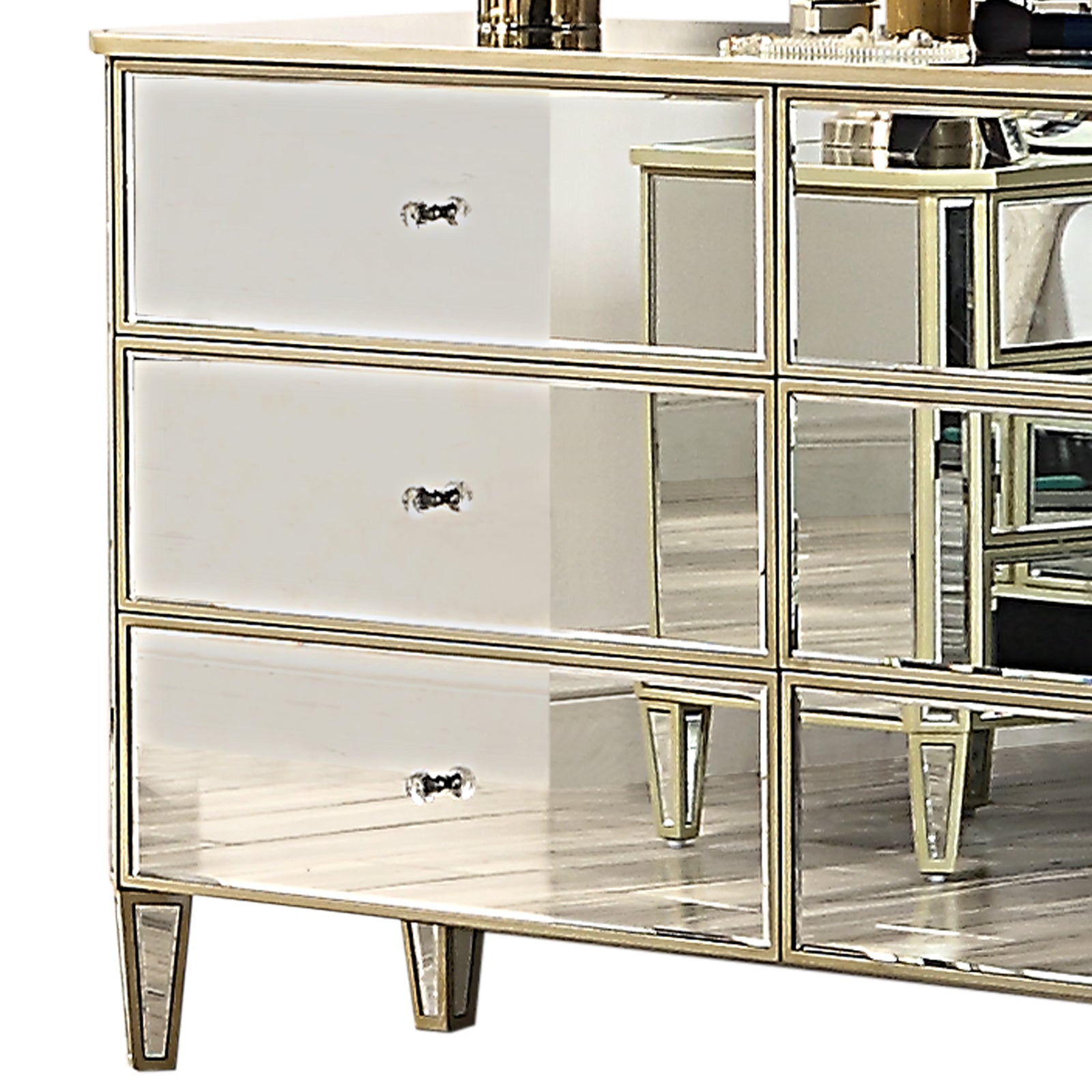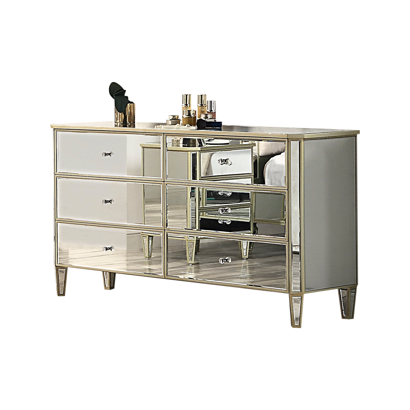 Antique 6 Drawers Dresser MDF Gold Colour Mirrored Work