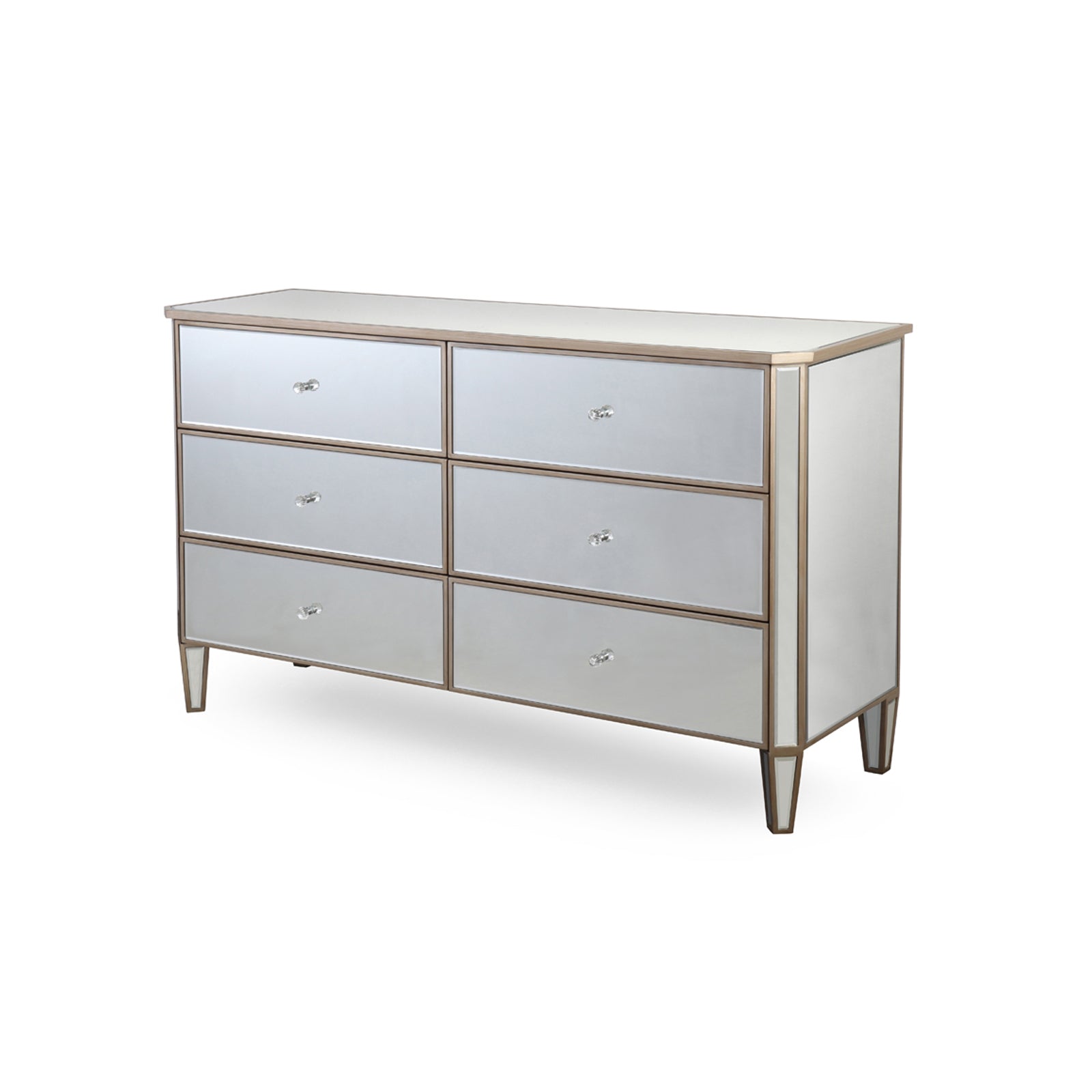 Our newly arrived Antique Dresser has an elegant crystal look with the front of each drawer being covered with mirror. This astounding mirrored design can easily make the furniture the main attraction of any bedroom by reflecting all other furniture pieces of the room.