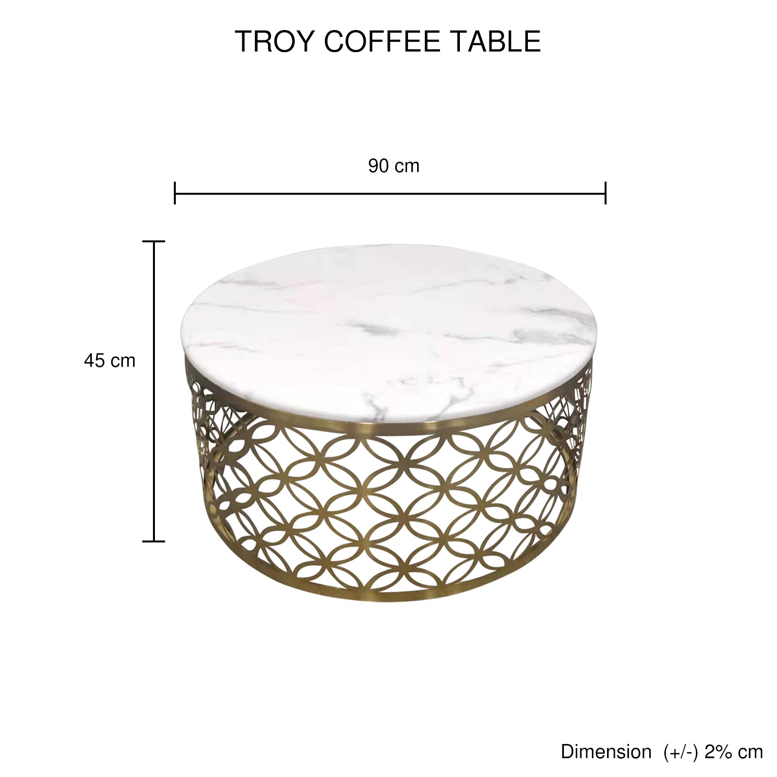 Adorned with metal manipulated design, the Troy Coffee Table is sure to bring an opulent feel to any living room. This gorgeous table features great combination of White and Gold colour.
