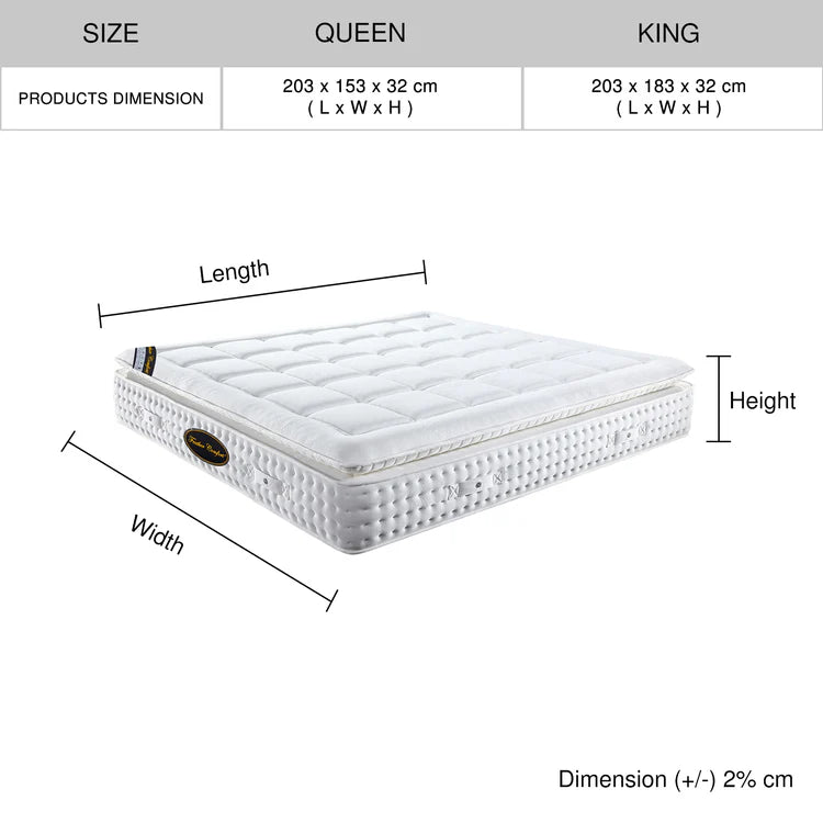 Our Dreamland Mattress is packed with all the premium features that will offer you a comfortable and luxurious experience premium cotton fabric, soft quilting layer, high density foam and independent pocket coil system. Providing you an absolute luxury with an undisturbed sleep all night long.