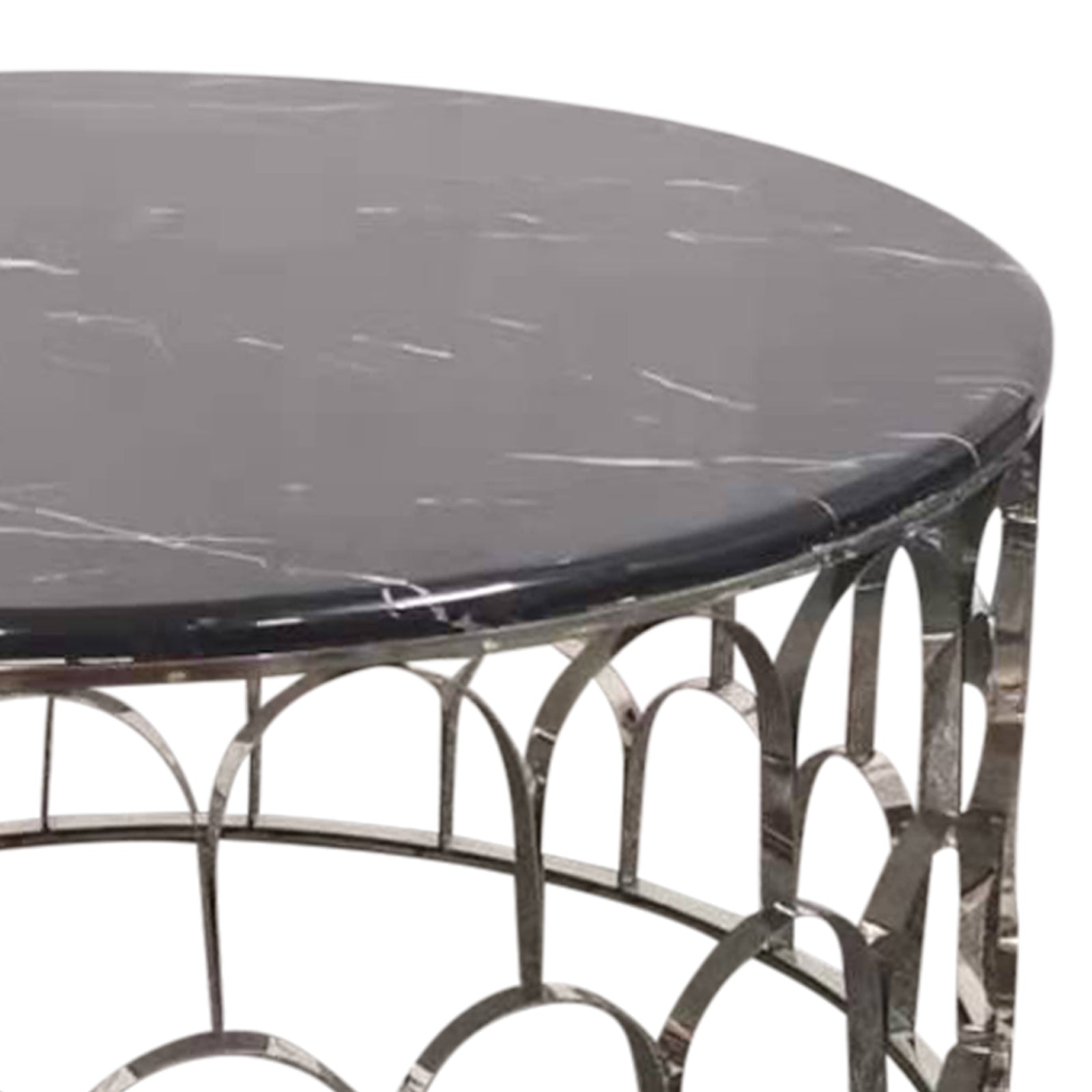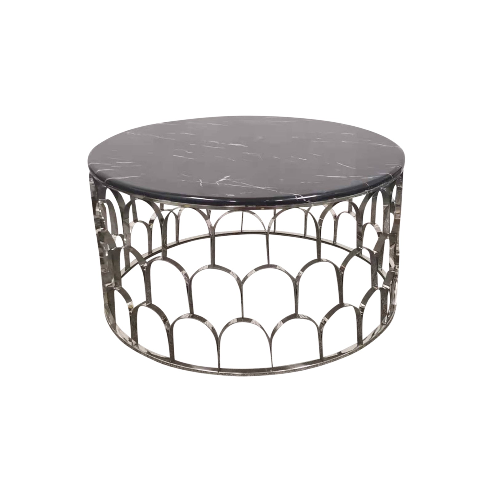 Falcon Round Faux Marble Stainless Silver Base Metal Frame Coffee Table