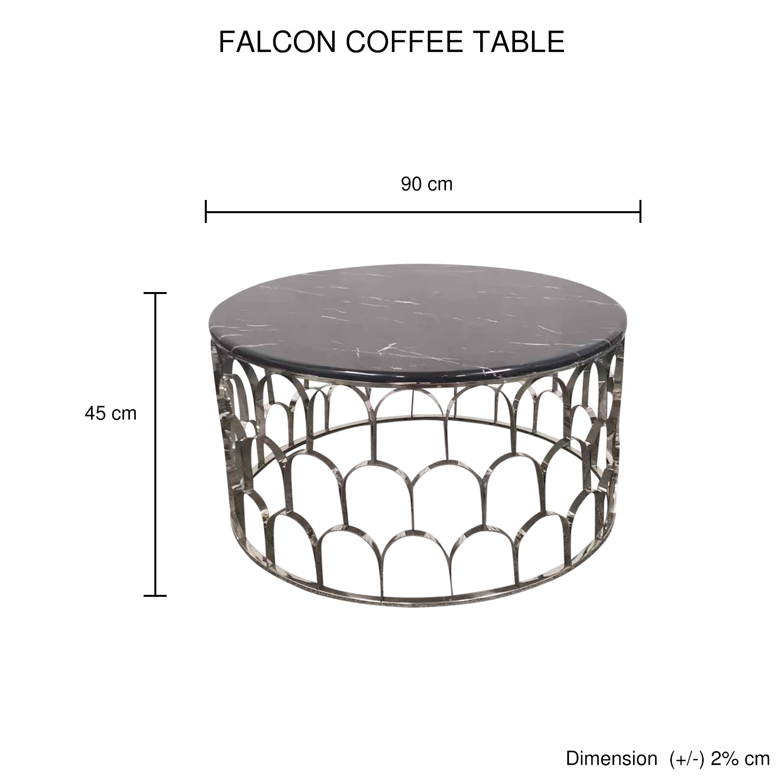 Falcon coffee table has beautiful detailing on its Round shaped base. The steel part has given stainless electroplating. This provides an aesthetic and durable finish.