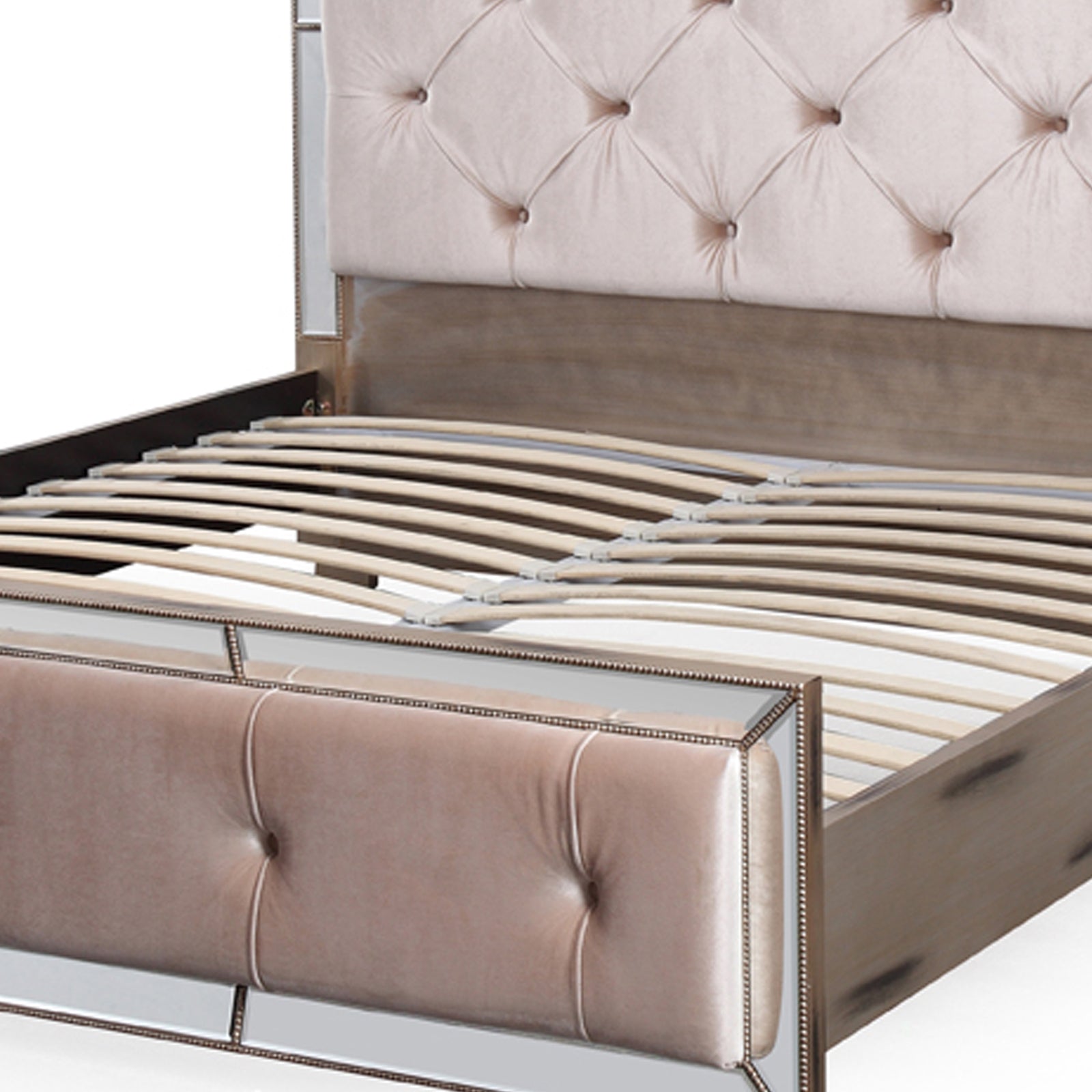 Germany Bedframe Velvet Upholstery Tufted Headboard Mirrored Work Deep Quilting in Beige/Black Colour