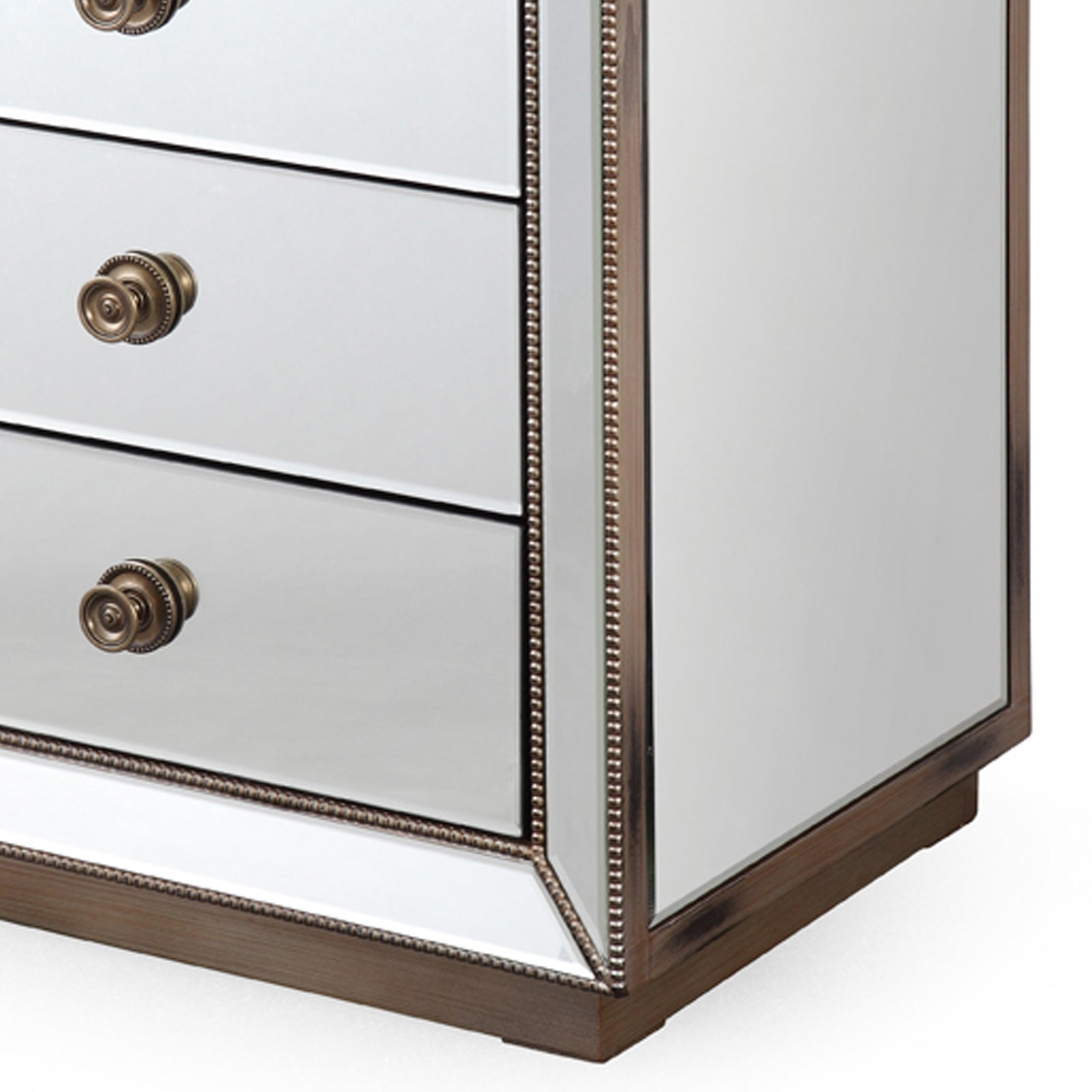 Our newly arrived Germany Bedside Table has gorgeous look with the front of each drawer being covered with mirror. This mirrored design can reflect the image of other furniture pieces of the room on its mirror and thus creates an astounding look.