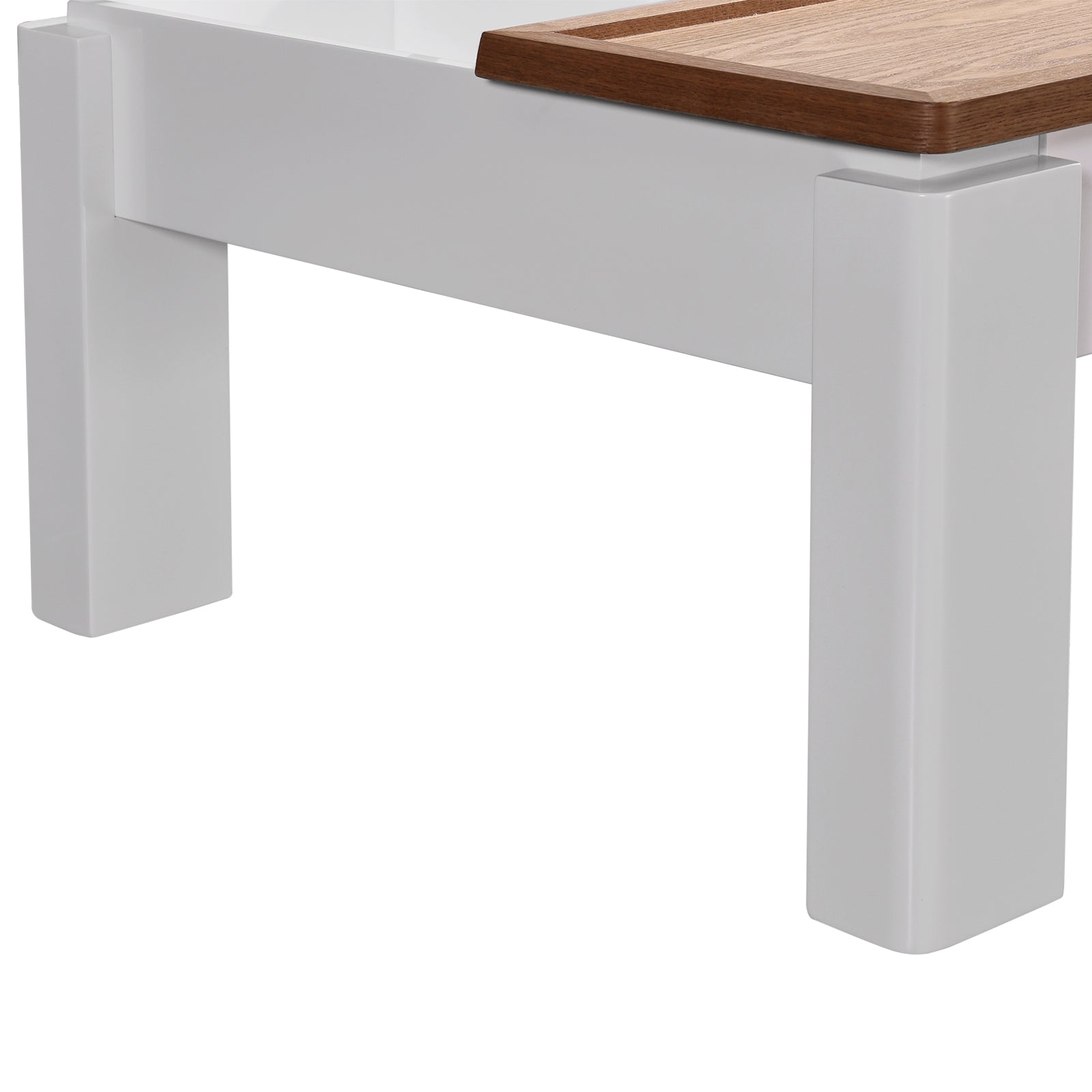 ✓ Black & White Coffee Table: Mild white high glossy painting, walnut veneer cover