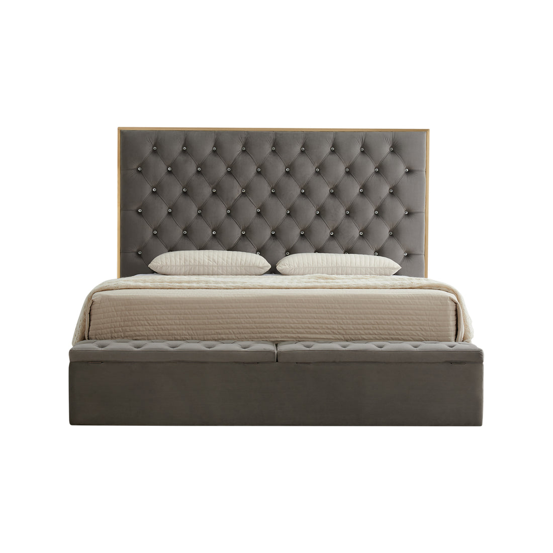 Our stylish modern bed frame is furnished with the premium quality fabric and foam padding. The headboard has stainless steel border in Champagne Gold colour. It is also finely decorated with deep quilting and fabric covered buttons on high padded surface.