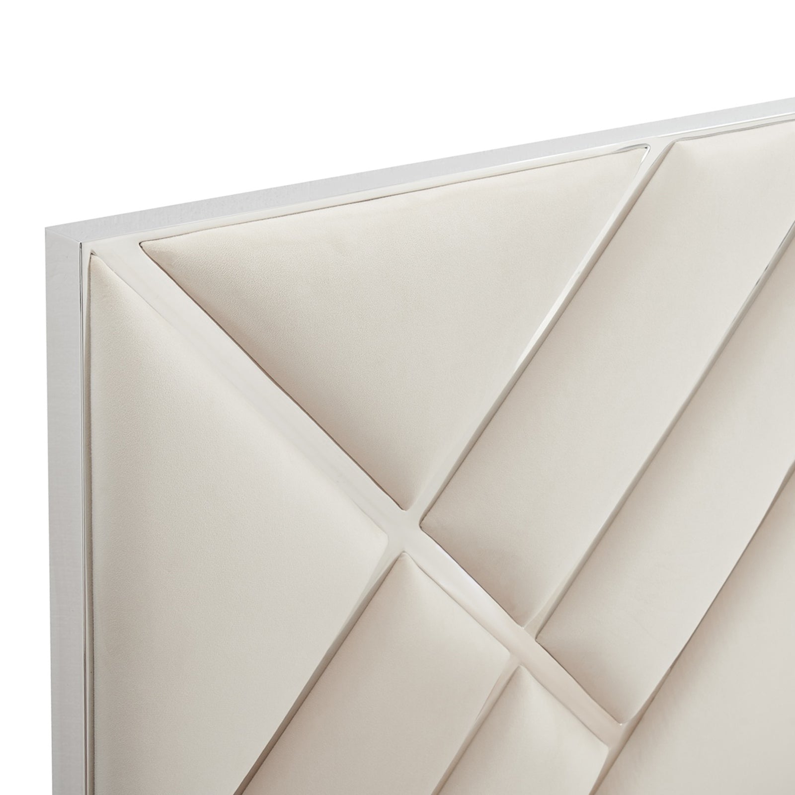 Matrix Bed Frame Fabric Padded Upholstery High Quality Slats Polished Stainless Steel Feet