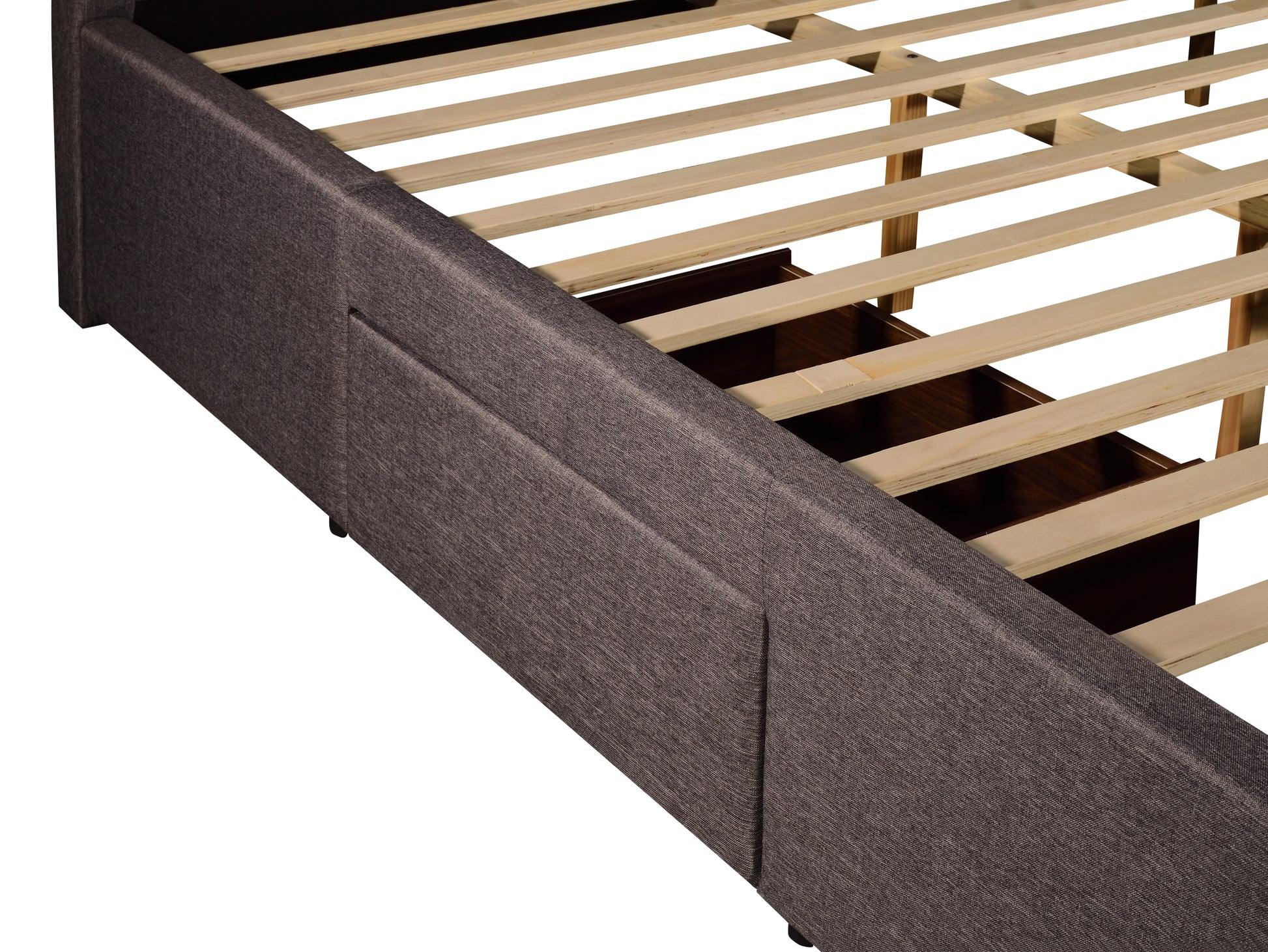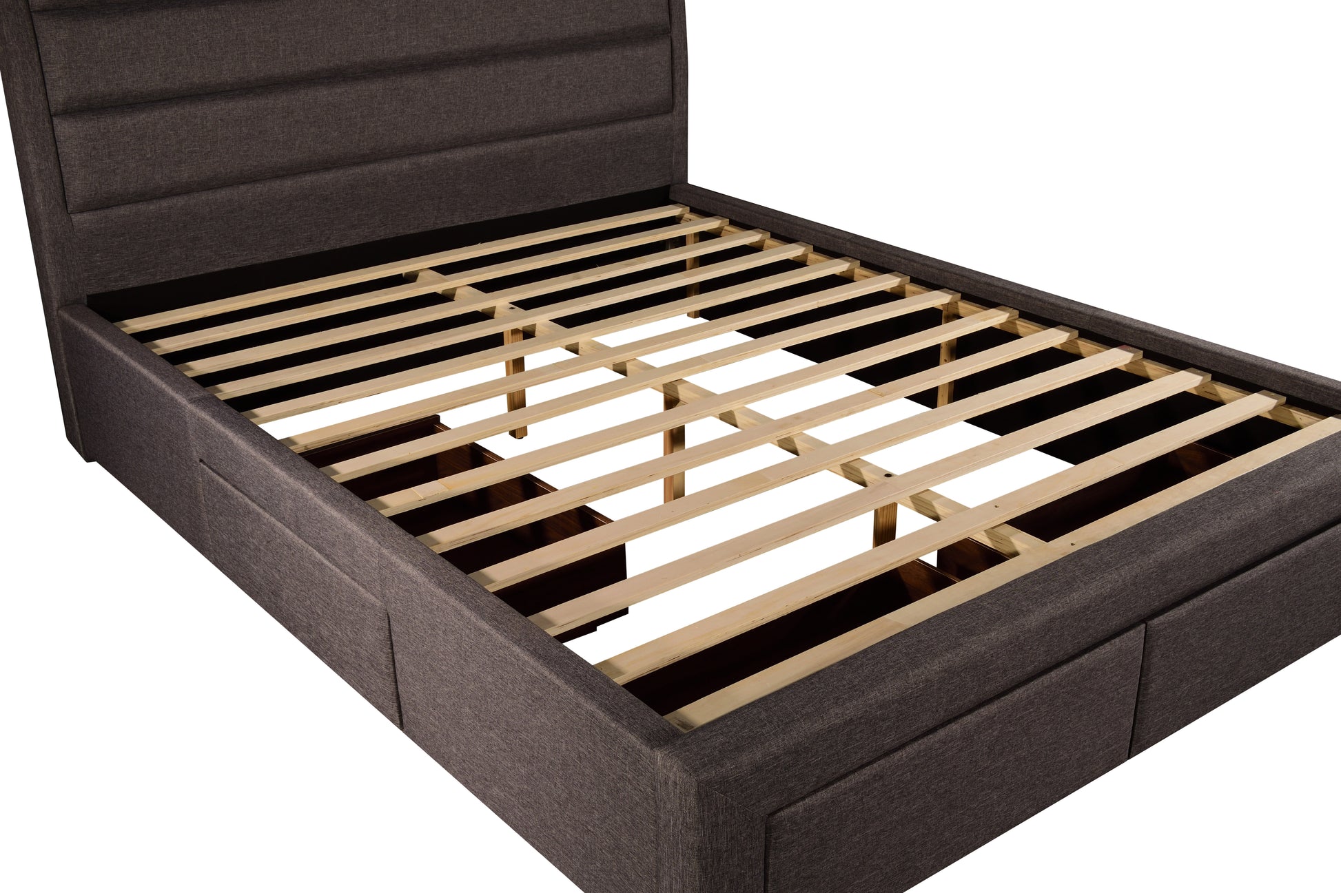 The bed provides ample storage space with three drawers among which two are near the foot end and the rest is on the left side of the bed. So be ready to embrace a clutter free look of your bedroom.