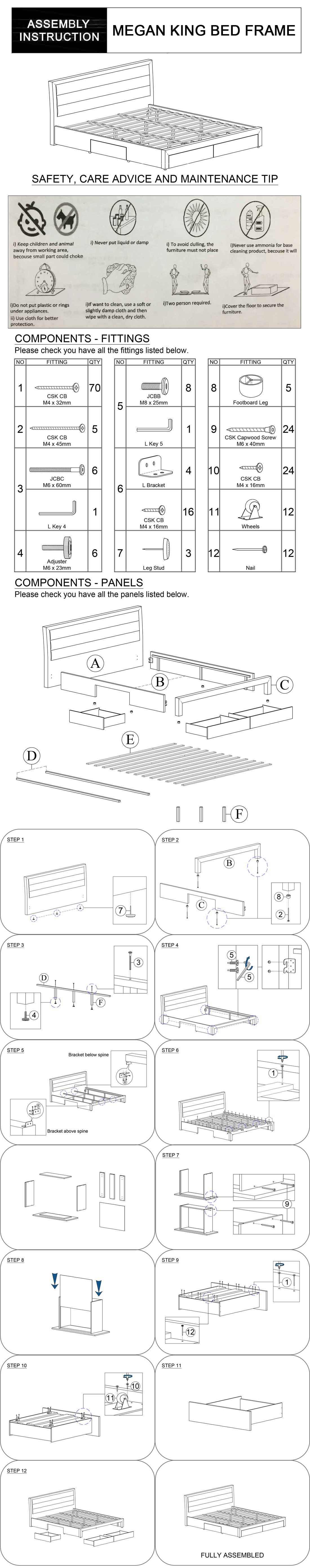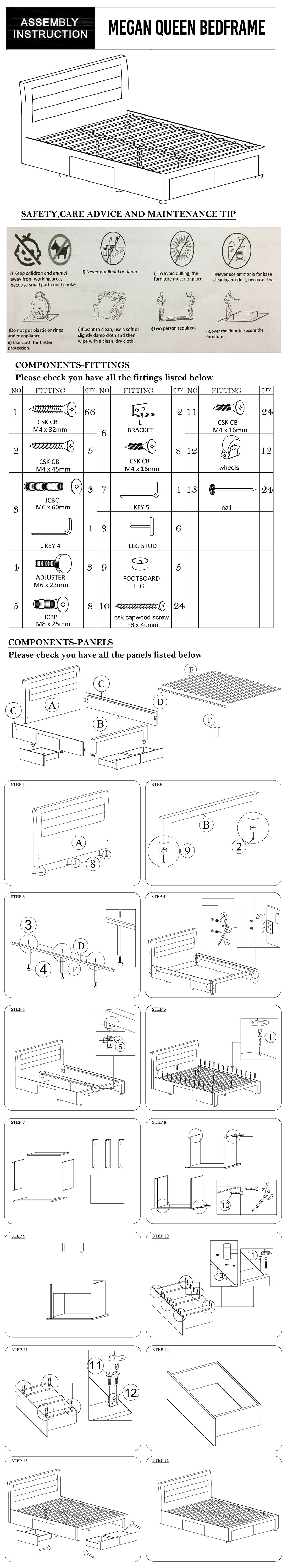 Megan bed has LVL slats as the bed base. LVL is stronger, straighter, more uniform and stable. So, LVL slats will make the bed stronger and enhance its endurance. The bending and bonding strength are 3 times stronger than conventional bed bases, so you will have an undisturbed sleeping experience.