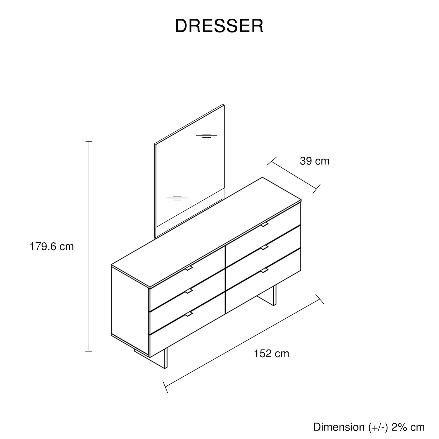 Myles Dresser Mirror MDF Board with 6 Drawers Slim Metal Handles