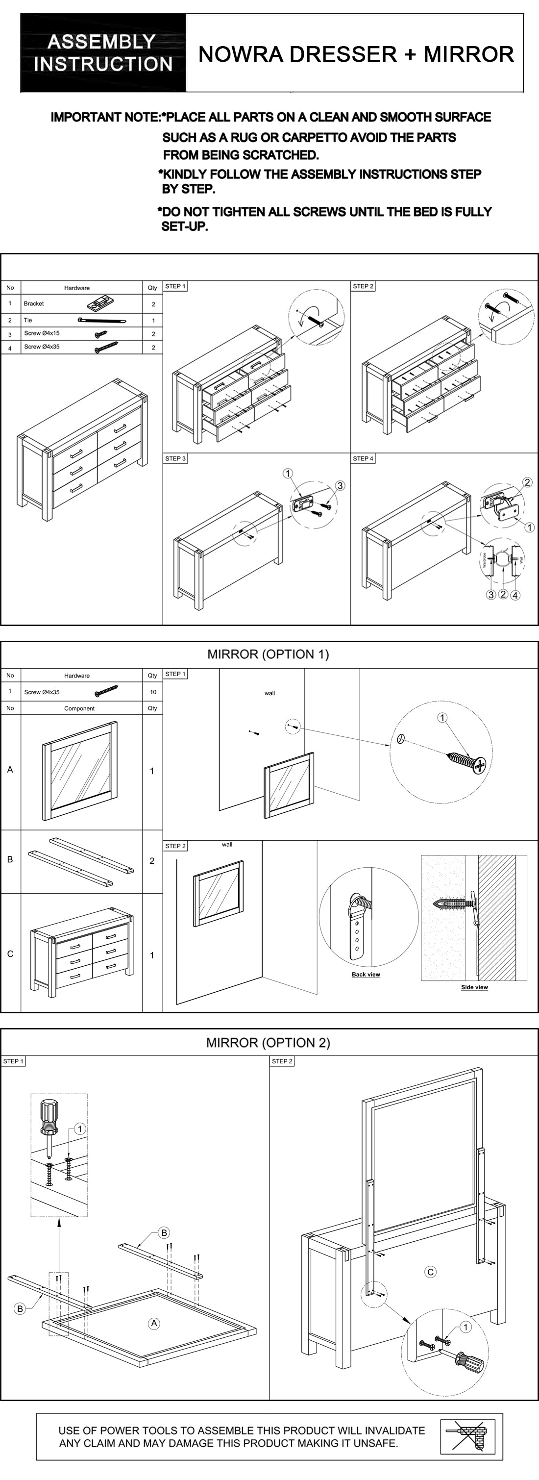 ✓ Box Weight (kg): Dresser-51, Mirror-19